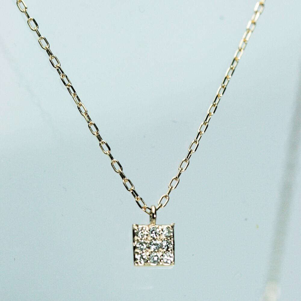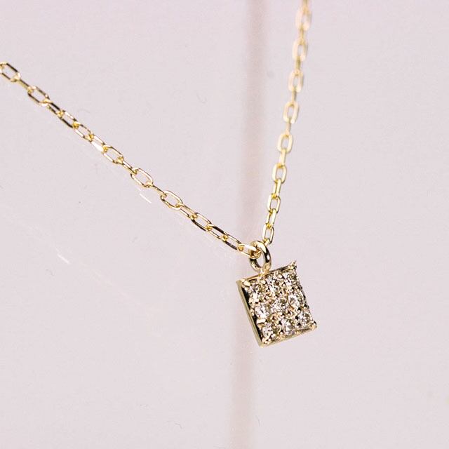 ◇の中にダイヤモンドを埋め込んだパヴェタイプ。シンプルで上品なデザインがどんな場面にも合わせやすく、オンオフ問わず幅広くご使用いただけます。光の加減できらめくダイヤモンドには、厳選された高品質なものを使用し、クラフトマンの手仕事によって製作されています。 誕生日 記念日 母の日などにもふさわしいプレゼントです。