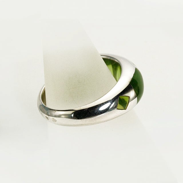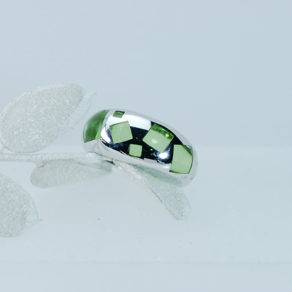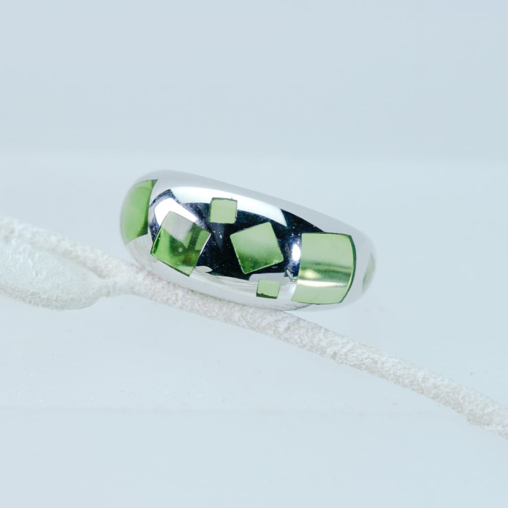 K18ホワイトゴールドとライトグリーンのレジンのリング。フランス製。