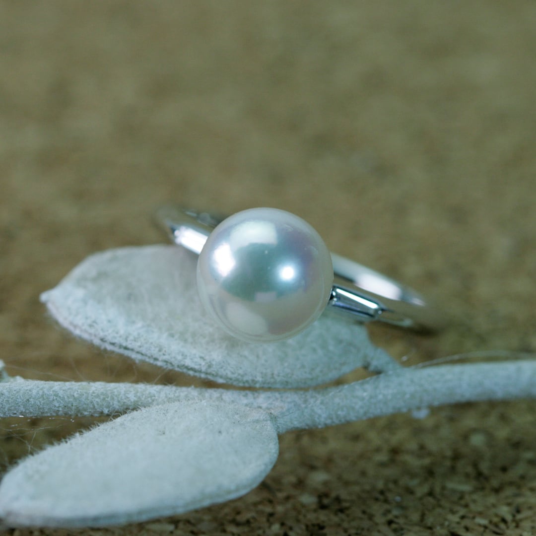 プラチナ枠の横に、テーパーダイヤモンドが入っています。珠のサイズは8ミリ。