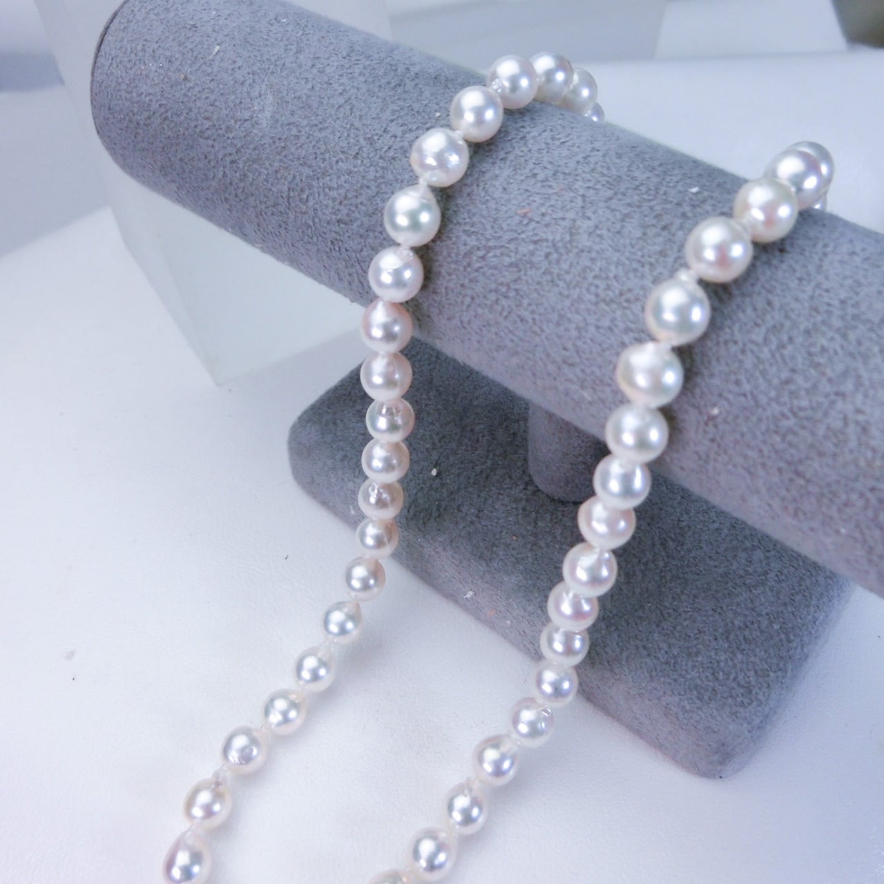 5.5-6.0ミリという小粒のパールが、華やかさを演出します。オールノッツ加工で繊細なデザインを引き立て、品のある輝きを放ちます。40cmの長さは、さまざまなスタイルとの相性も抜群で、一生物のアクセサリーとして、大切な方への贈り物に最適です。このアコヤパールネックレスは、女性のエレガントさと魅力を引き出してくれるアイテムです。ほどよい光沢と繊細なデザインが、あなたの魅力を一層際立たせてくれることでしょう。おしゃれを楽しみながら、自信と美しさを感じてみてください。